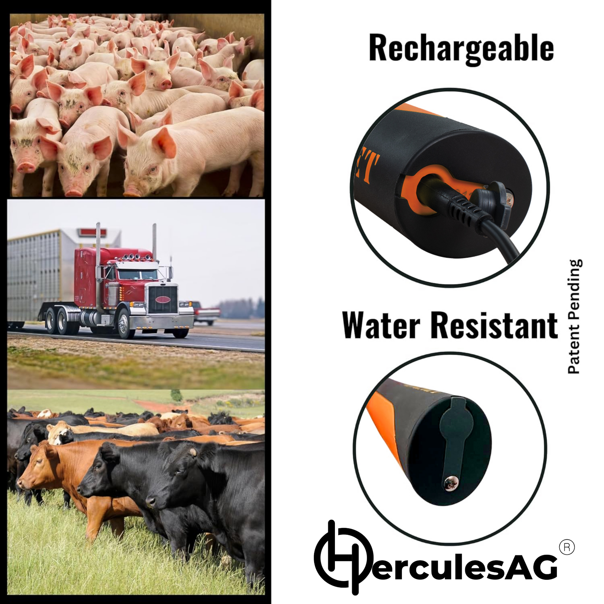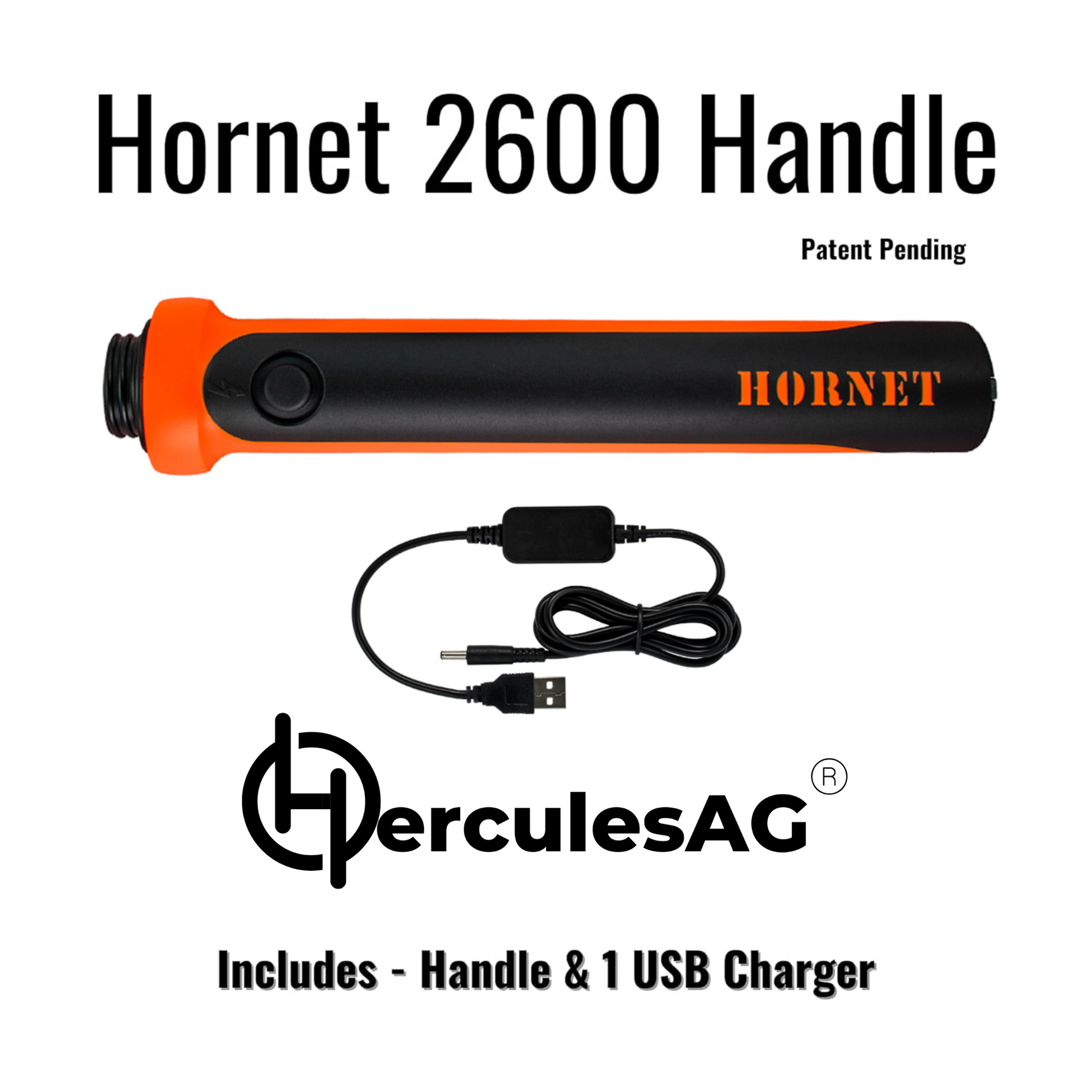 Upgrade your livestock handling with the HerculesAG Hornet 2600 – a high-performance USB Rechargeable Cattle Prod Handle. Charger included with purchase.  New color for the Hornet 2600 Handle now comes in Black/Orange.